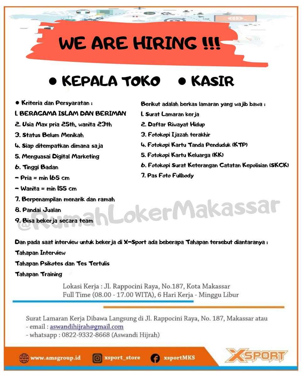 Rumah Loker Makassar Twitterren Perusahaan Yang Saat Ini Sedang Berkembang Di Bidang Retail Fashion Olahraga Membuka Lowongan Kerja Sbb Kepala Toko Kasir Kirim Cv Dan Lamaran Dikirim Sbb